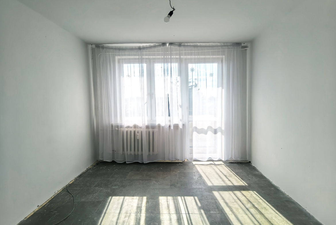 Mieszkanie wysprzątane i gotowe do remontu.
